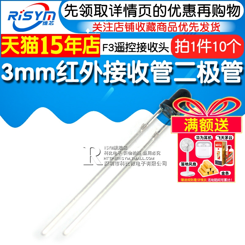 10个 F3遥控接收头 Risym 3mm红外接收管二极管940nm红外接受管