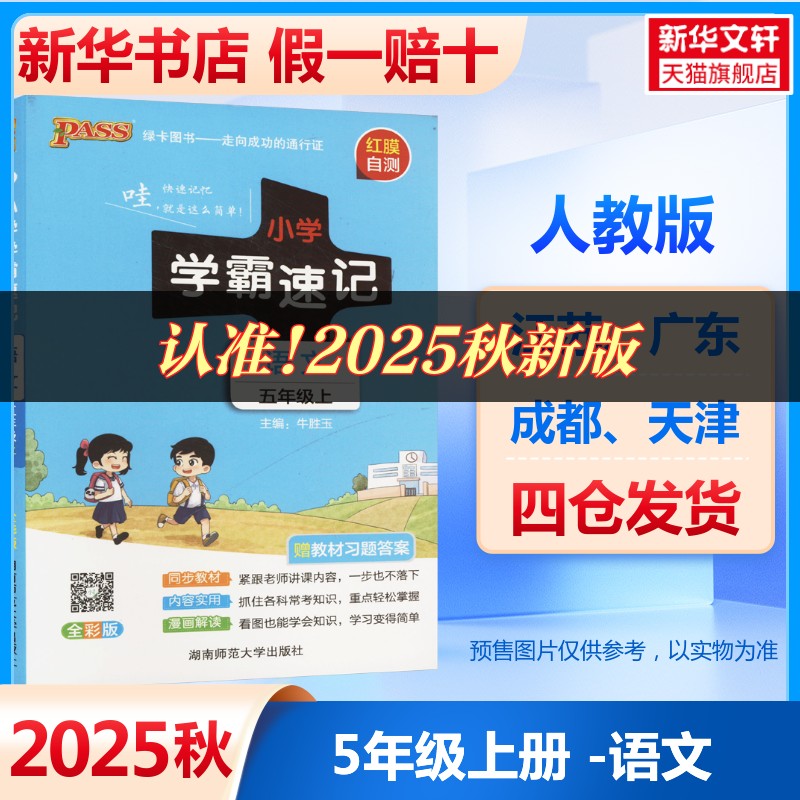 pass绿卡小学学霸速记5年级上册语文人教版 2025秋新版 五年级小学暑假教材同步练习册必刷题资料辅导书 新华文轩