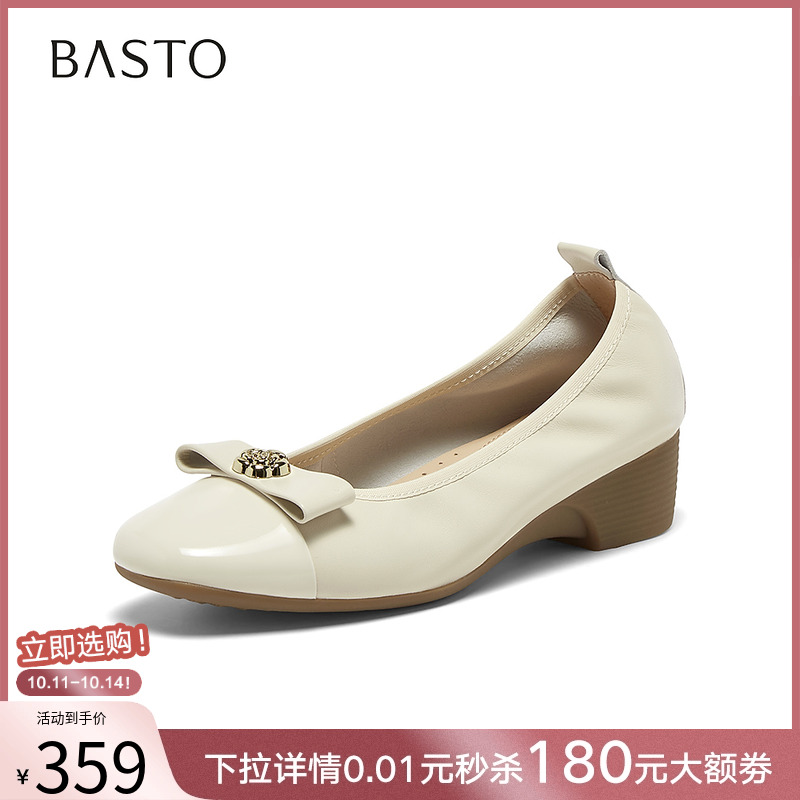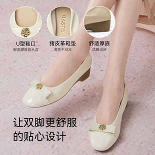 子D3S1DAQ5 真皮不累脚妈妈上班鞋 百丽粗高跟浅口单鞋 女2025新款