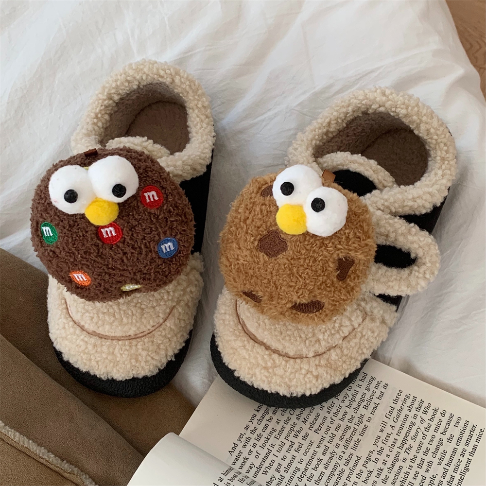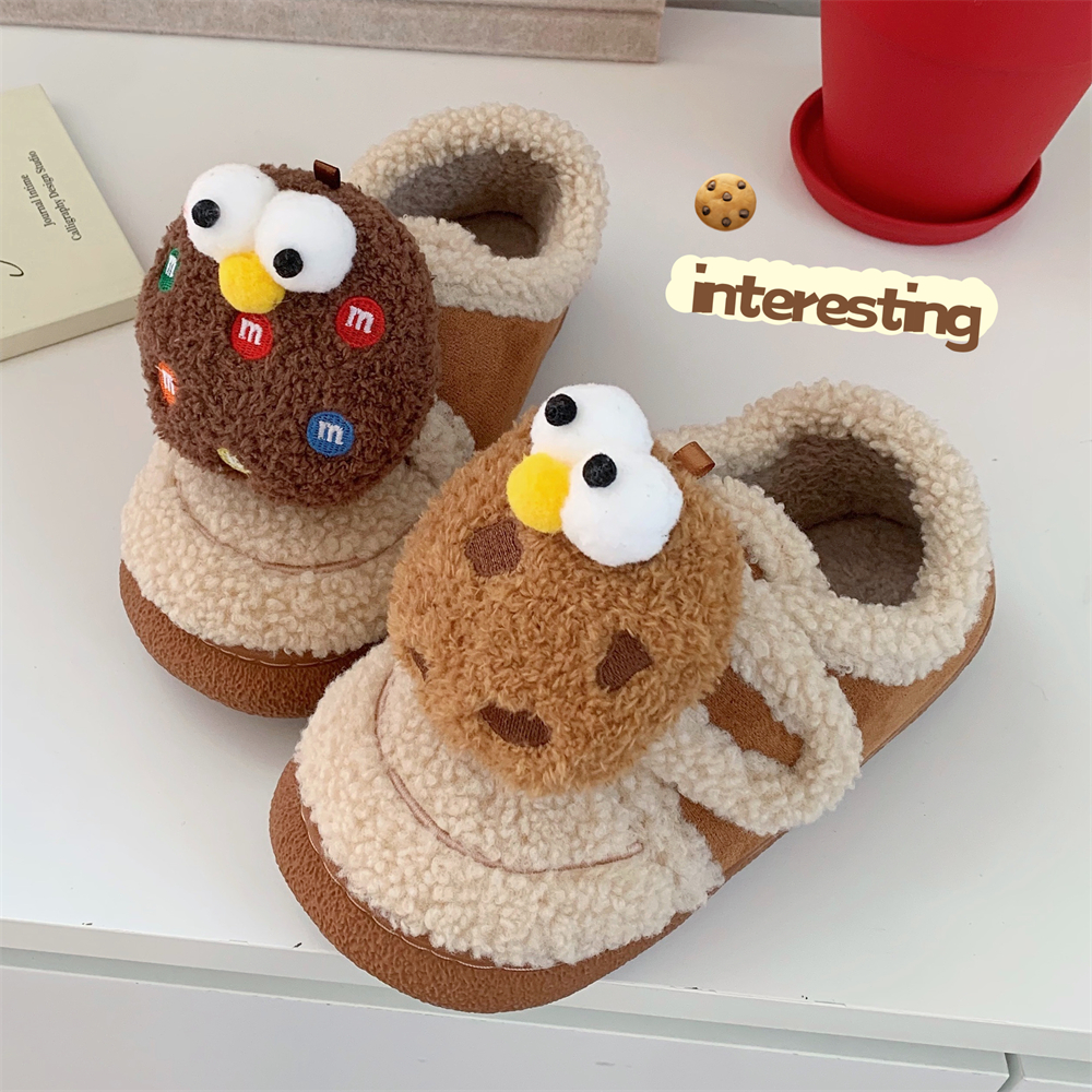 大眼曲奇饼干豆豆鞋 高级个性 趣味个性 女冬季 魔术贴百搭羊羔毛棉鞋