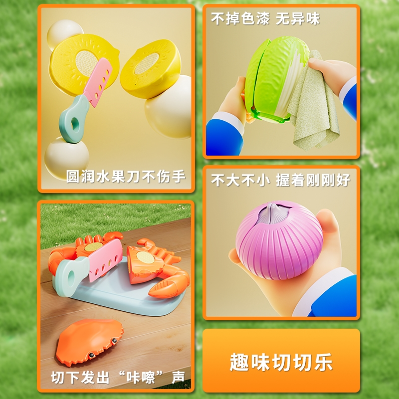 儿童水果切切乐仿真切水果蔬菜玩具切切看剥皮榴莲女孩厨房过家家