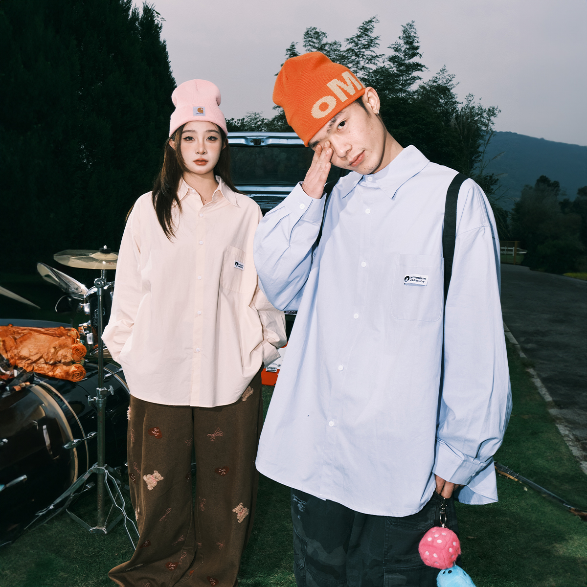 男2025春季 衬衫 情侣纯棉衬衣外套 复古学院风纯色长袖 lemanism美式