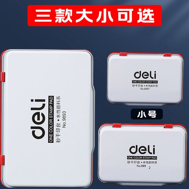 得力印台红色印泥快干水性印油印章速干财务会计办公用品盖章大容量金属印章盒大号方形秒干按手印中小号便携