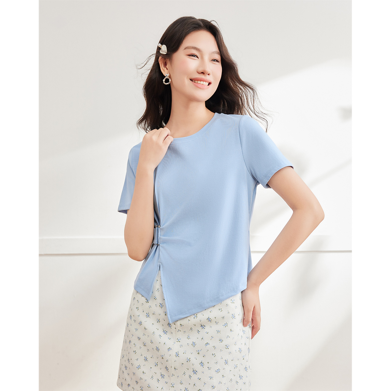 爱依服大码 时尚 女装 微胖韩版 简约休闲通勤百搭T恤 2025夏新款 IEF