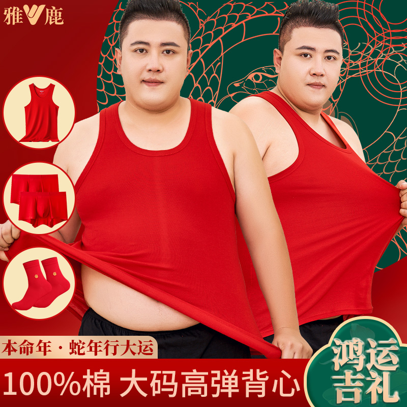 上衣 蛇年内衣全棉吊带无袖 雅鹿本命年大红背心男加肥大码 纯棉汗衫