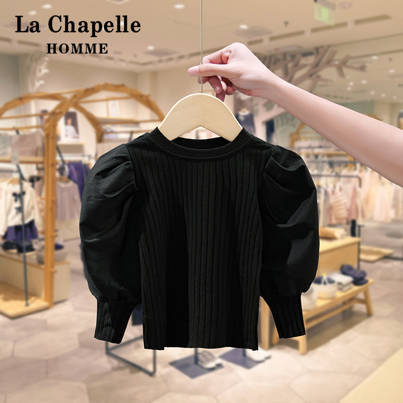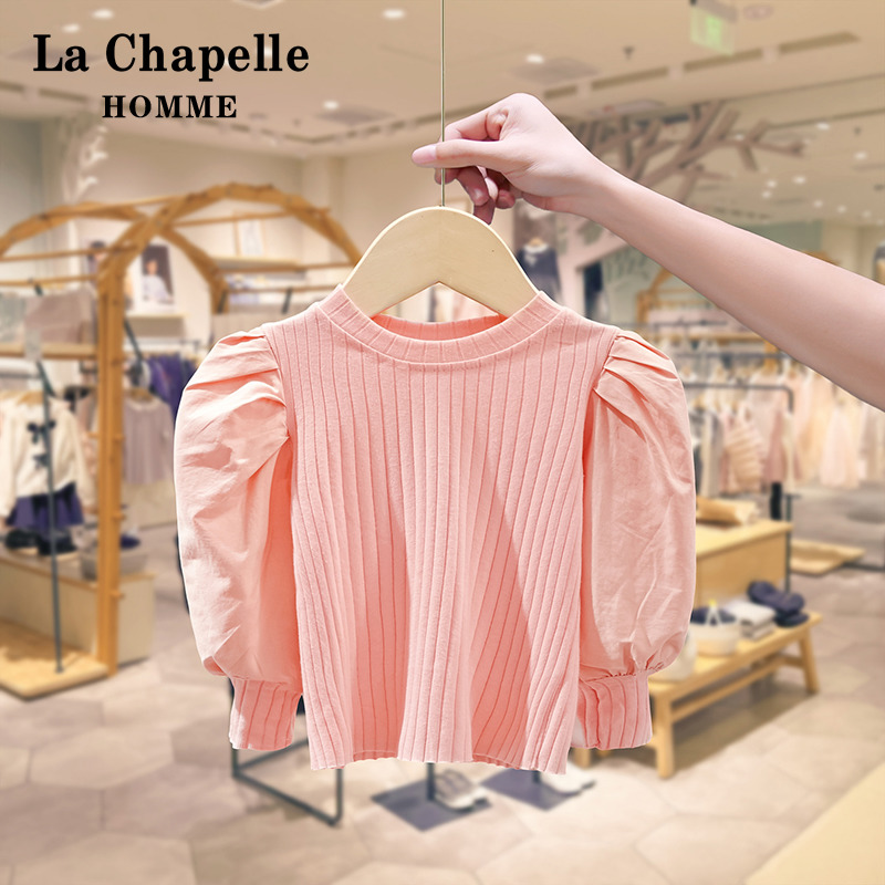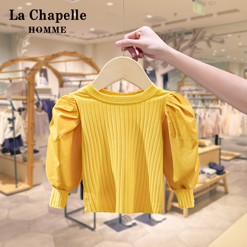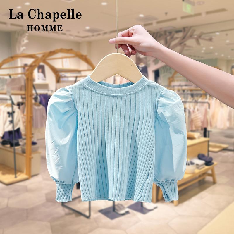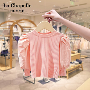 儿童针织衫 拉夏贝尔童装 宝宝洋气秋季 t恤上衣2025新款 女童泡泡袖