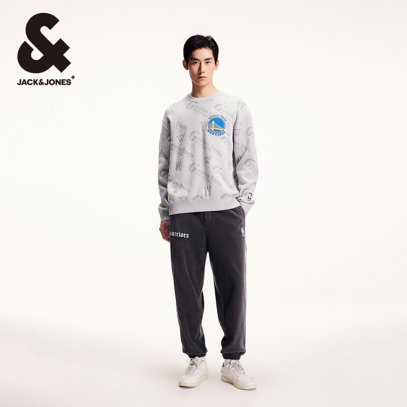 男装 杰克琼斯NBA联名勇士队春季 日常休闲圆领字母刺绣毛衣针织衫