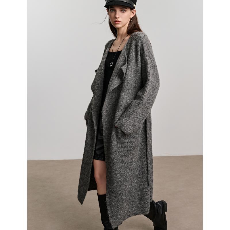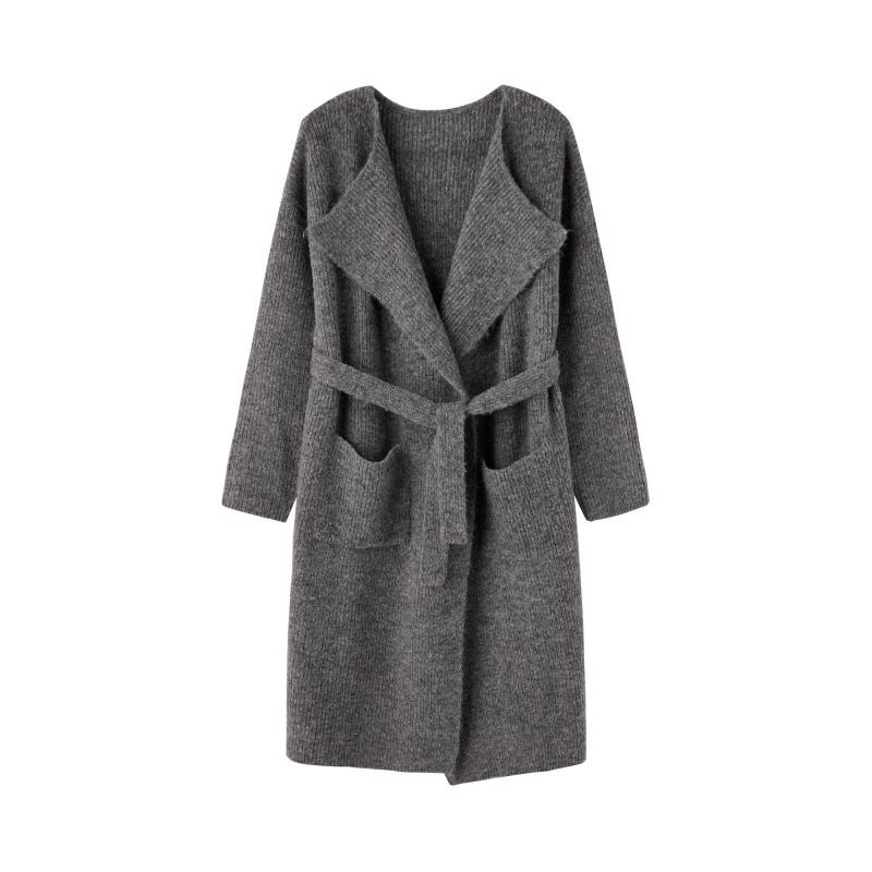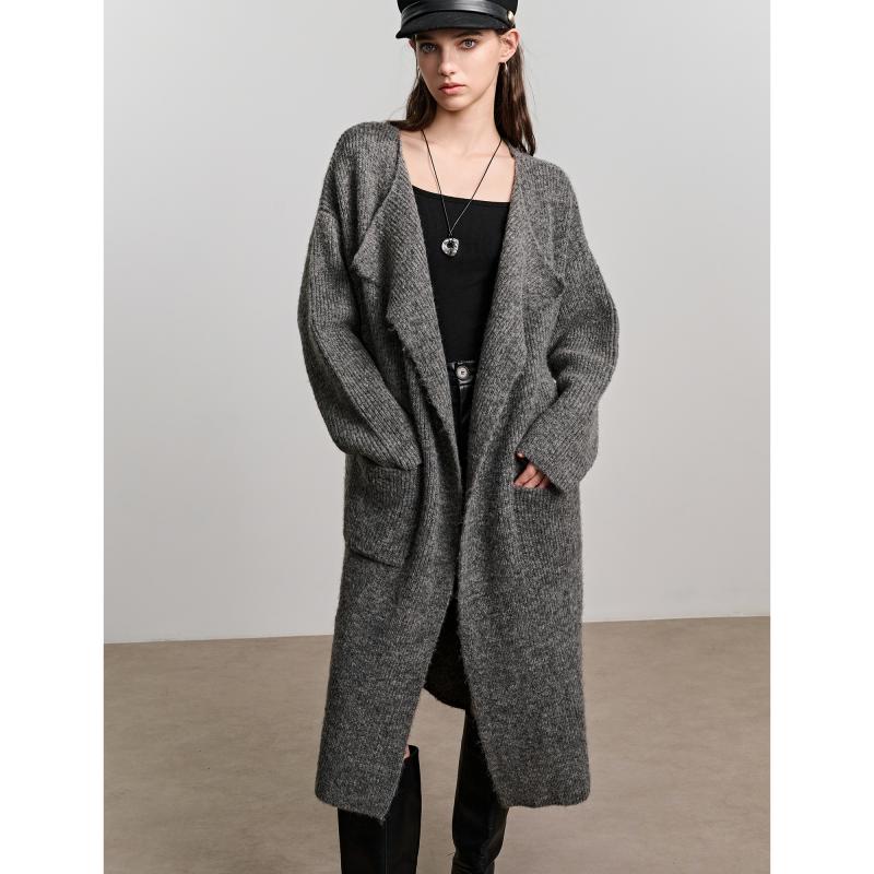 灰色针织开衫 Basic 毛衣外套女2025冬季 百家好慵懒风长款 House