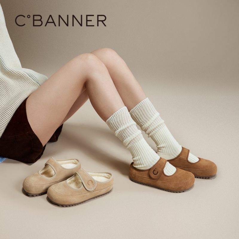 女冬季 运动鞋 新款 单鞋 毛毛鞋 千百度玛丽珍休闲勃肯鞋