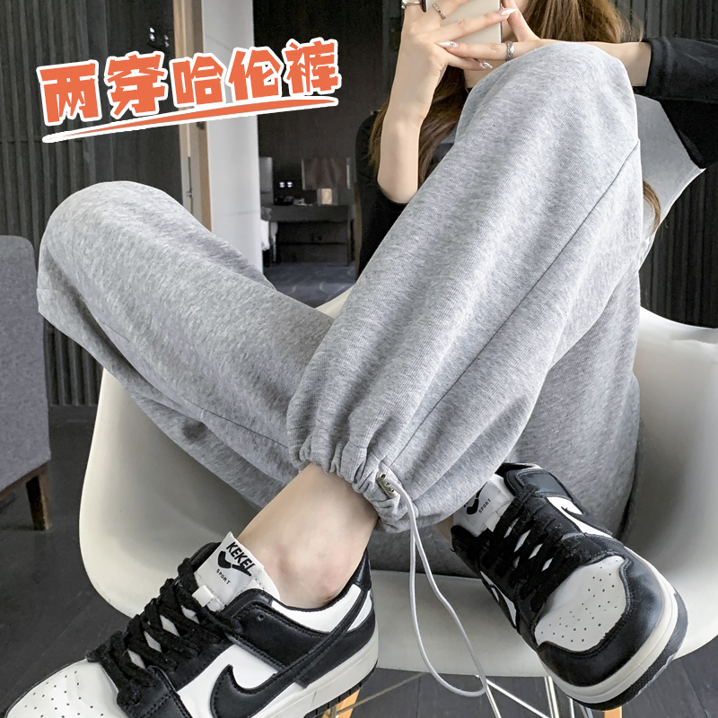 清仓 阔腿束脚休闲卫裤 灰色运动裤 直筒宽松美式 子 女2025春款