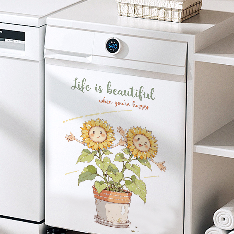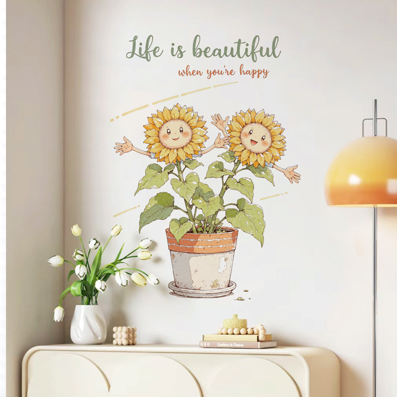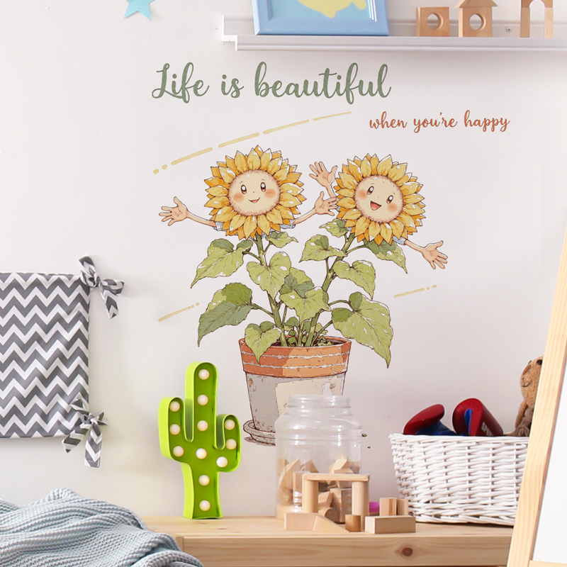 卡通可爱向阳花向日葵盆栽墙壁贴纸自粘励志文字寝室床头卧室简约