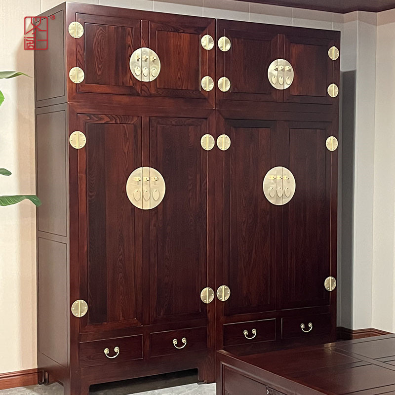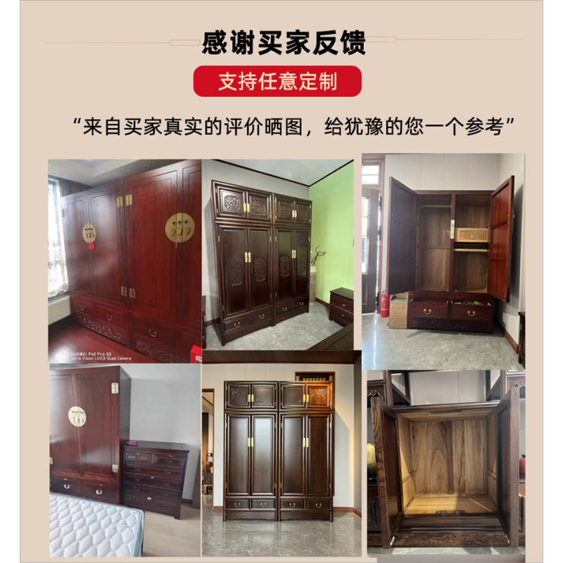 复古全实木衣橱整体一个中古风对开双开门单个衣柜主卧民宿独立柜