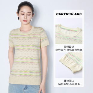 紫色提花针织衫 女装 圆领短袖 气质时尚 上衣小衫 马天奴2025春夏新款
