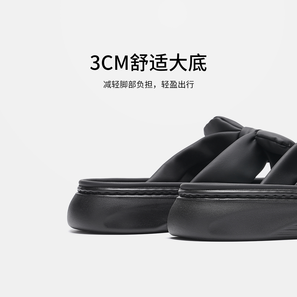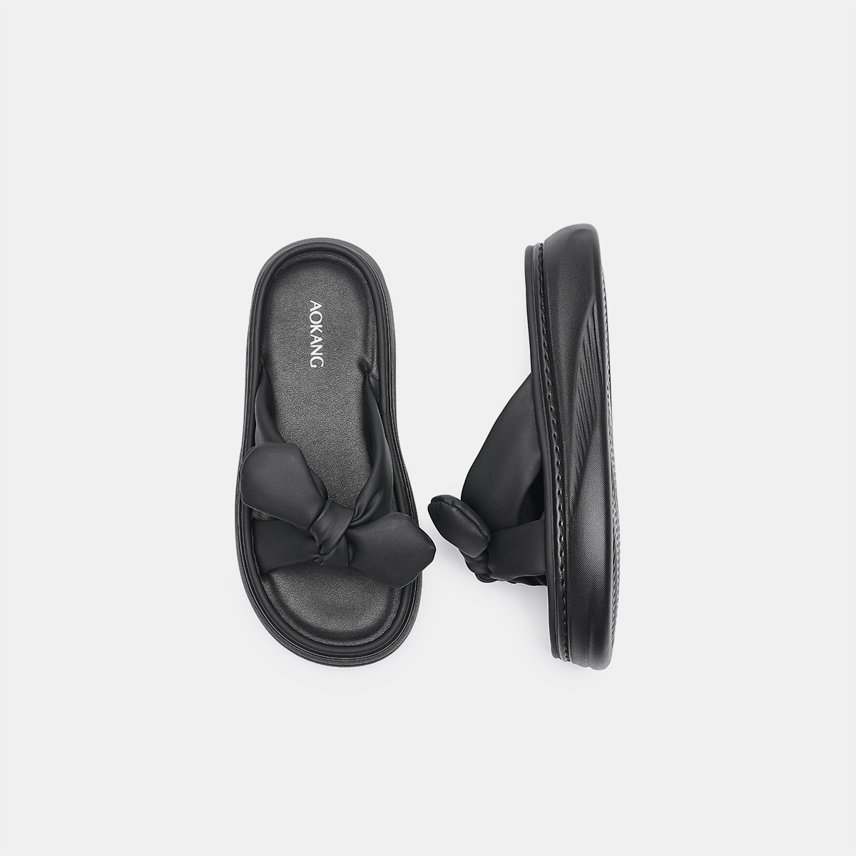 拖鞋 2025夏季 黑色蝴蝶结厚底外穿防滑凉拖门店发货 女鞋 奥康
