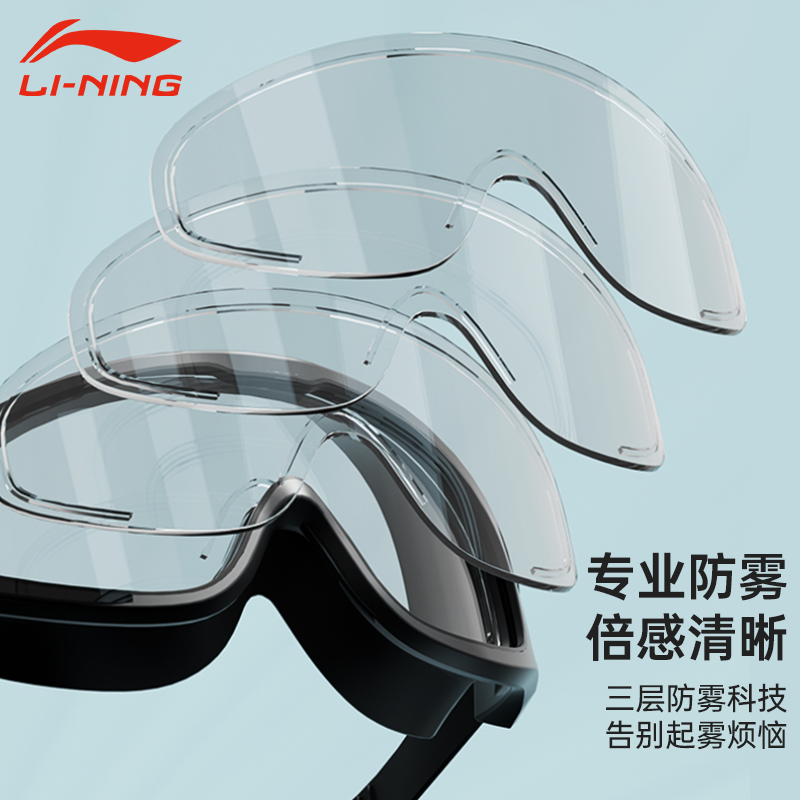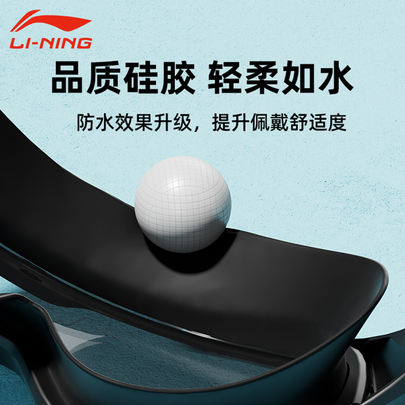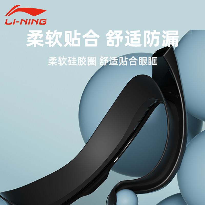 李宁大框护目镜不压眼游泳镜潜水冲浪学游泳硅胶一体式 大镜框泳具