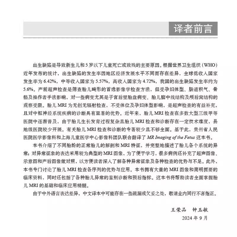 钟玉敏主译 王荣品 适用各级影像科医生及妇产科科医生 胎儿磁共振诊断初学者学习 社 胎儿磁共振成像 科学出版 中文翻译版