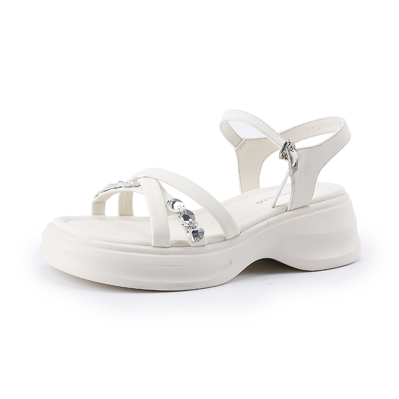 女2025夏季 露趾厚底凉鞋 水钻时装 仙女风一字扣带时尚 鞋 蜘蛛王凉鞋