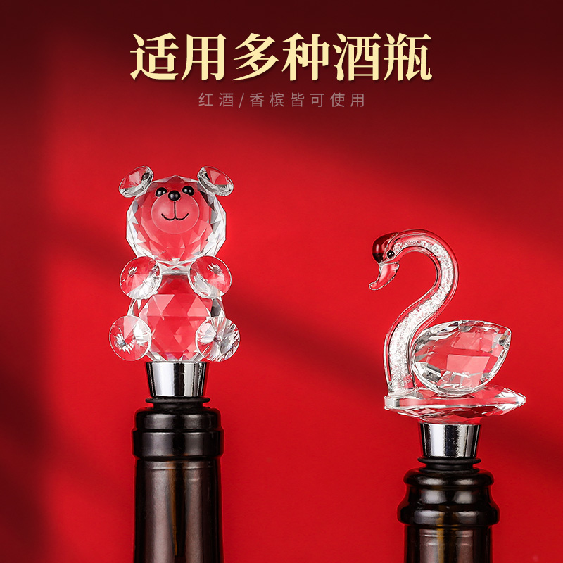 创意可爱防尘塞家用透明水晶玻璃葡萄酒瓶塞天鹅密封红酒小酒塞