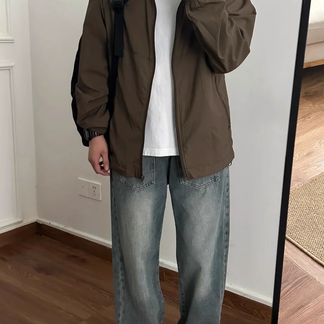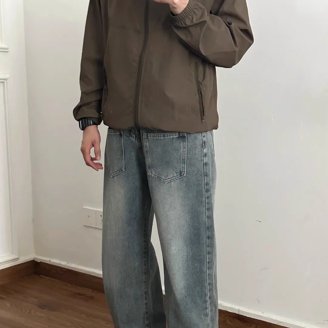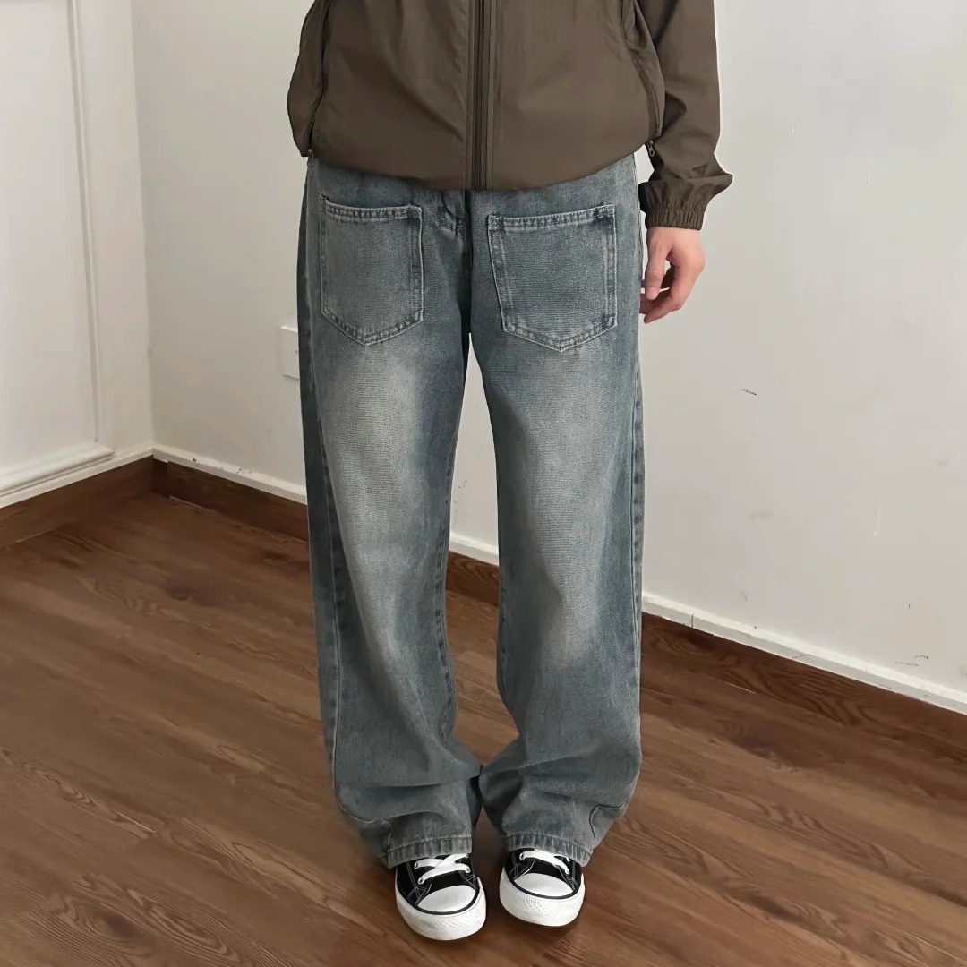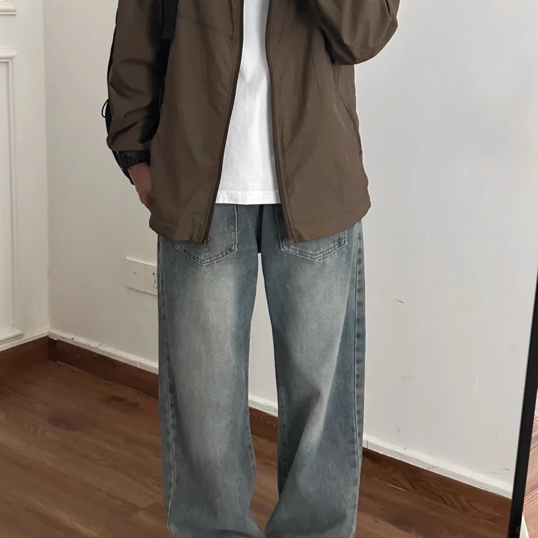 男女宽松阔腿显高直筒牛仔裤 休闲复古长裤 复古水洗牛仔裤 春秋新款