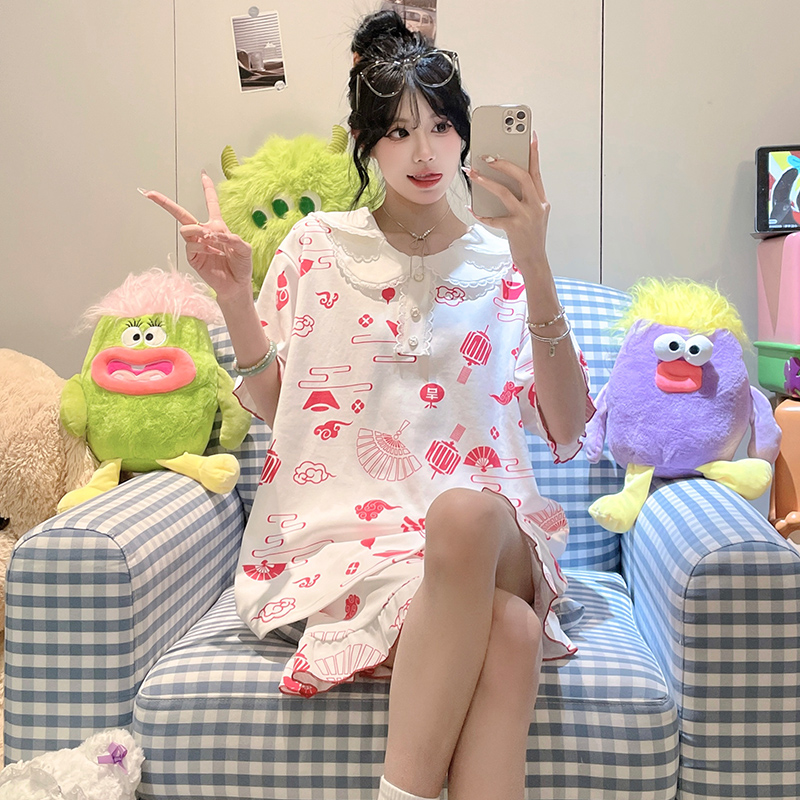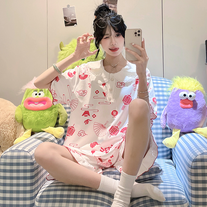套装 加肥加大码 短裤 短袖 200斤胖妹甜美冰丝休闲家居服 睡衣女夏季