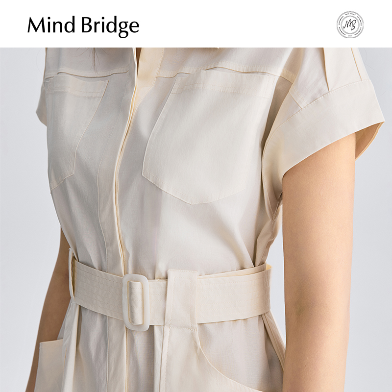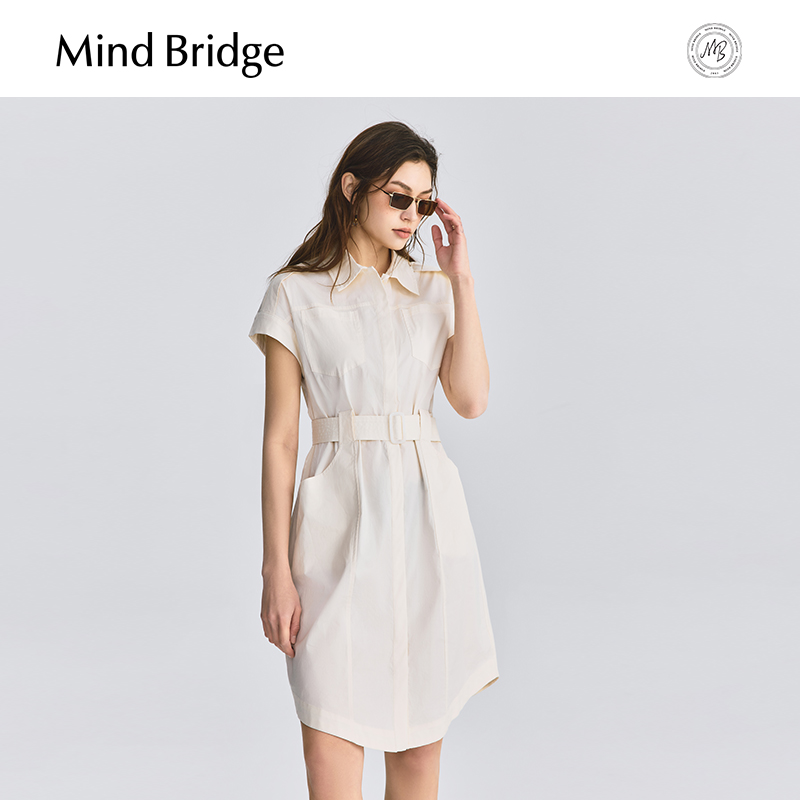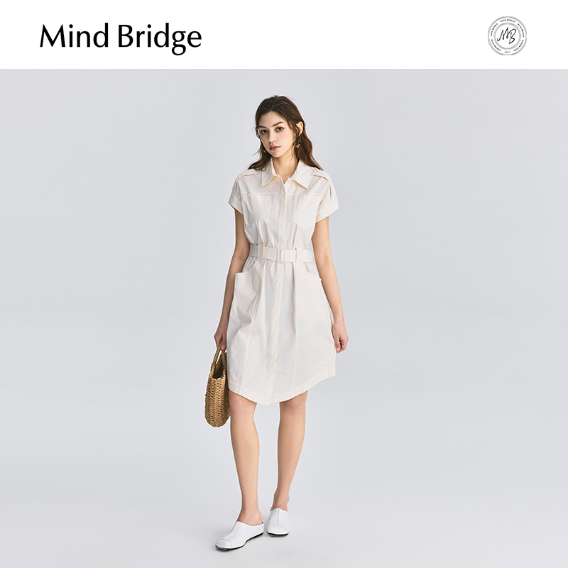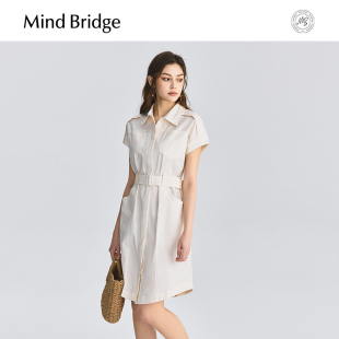 裙 裙女士翻领连衣裙气质收腰工装 Mind Bridge2025夏纯色休闲衬衫