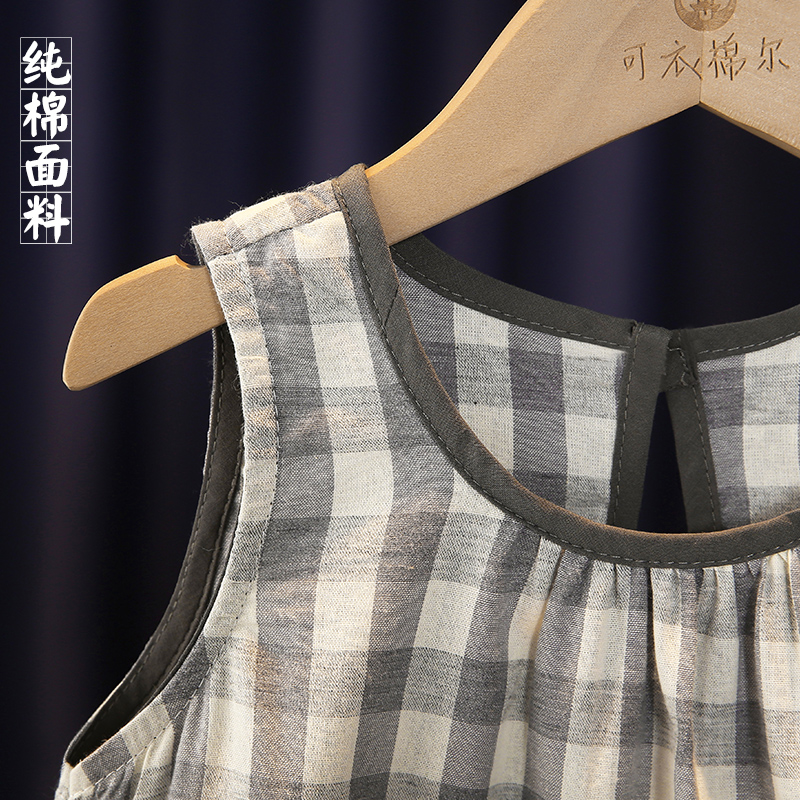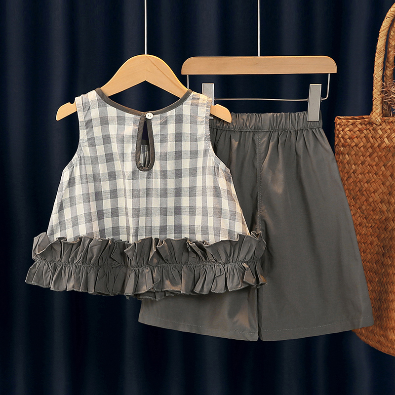 儿童纯棉背心两件套 韩系女孩洋气好看格子衬衫 女童夏套装 2025新款