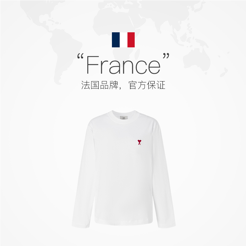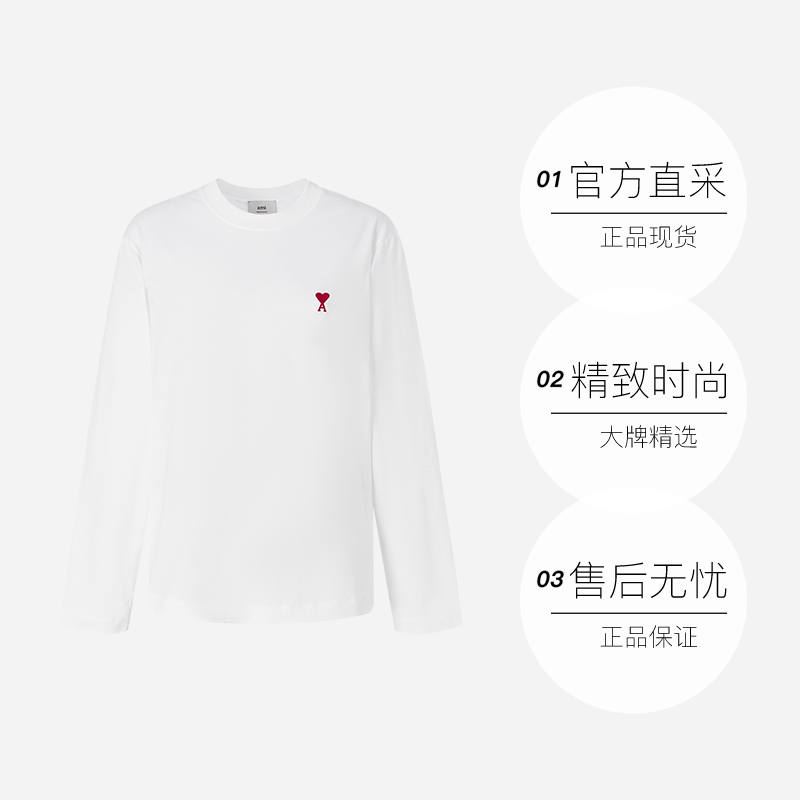 春夏经典 AMIPARIS 男女同款 爱心刺绣logo时尚 T恤 休闲长袖 自营