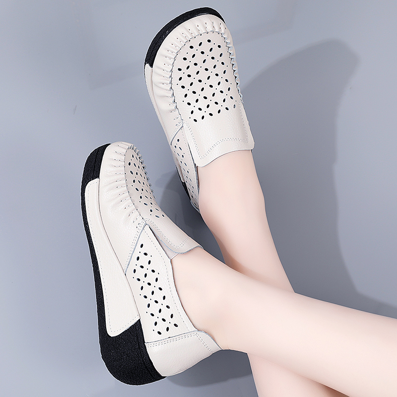 2025春秋妈妈鞋 女鞋 一脚蹬摇摇鞋 坡跟松糕鞋 女小皮鞋 真皮厚底单鞋