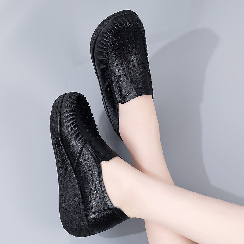 中跟镂空松糕摇摇鞋 气质复古妈妈厚底休闲大码 真皮单鞋 2025春秋款