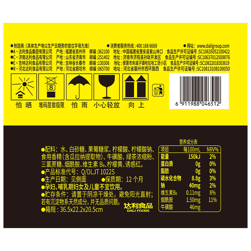 帕沃尔牛磺酸小分子蛋白肽功能饮料运动补充维生素能量0防腐饮料