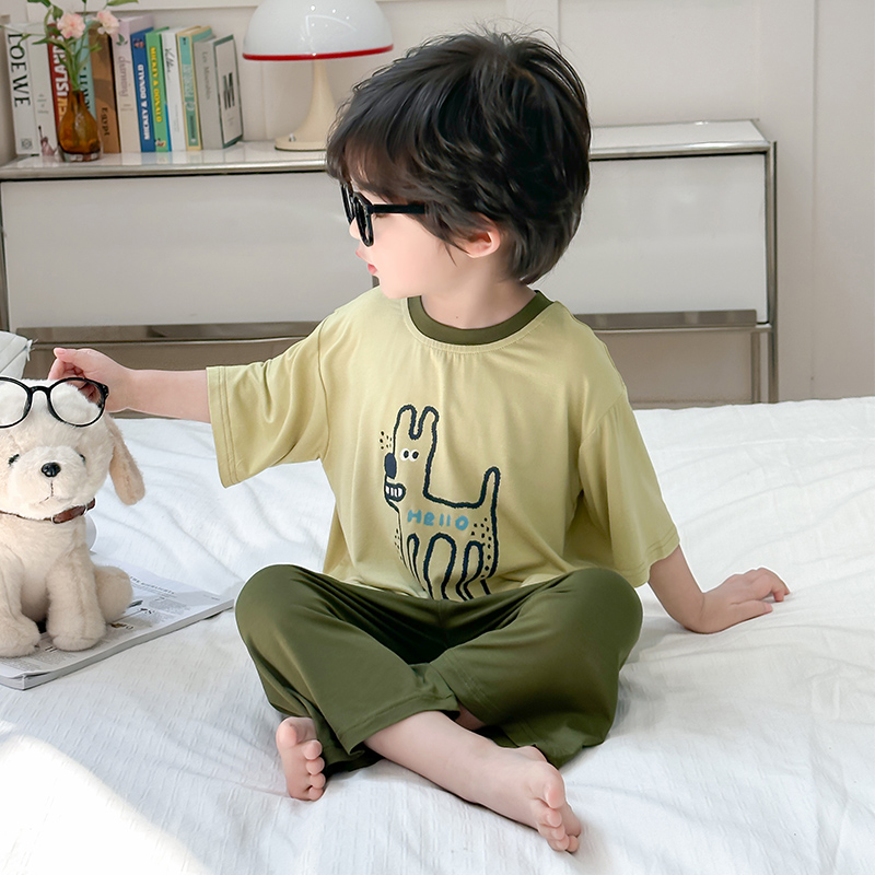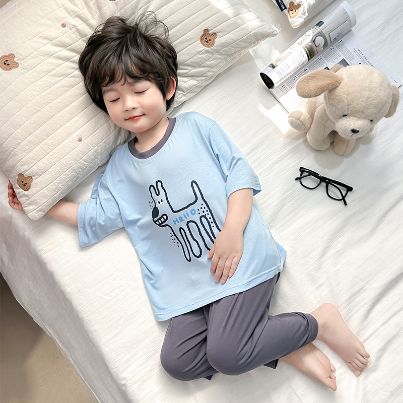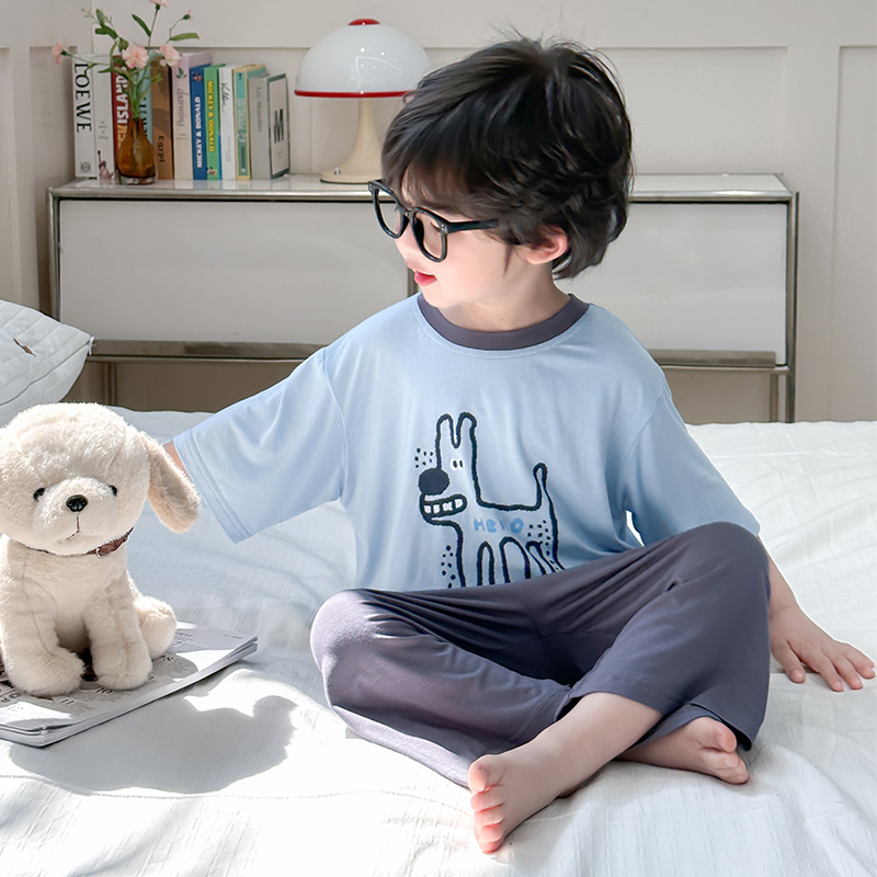 七分袖 儿童春秋季 可爱小狗男宝宝拼色家居服 2025新款 男童睡衣套装