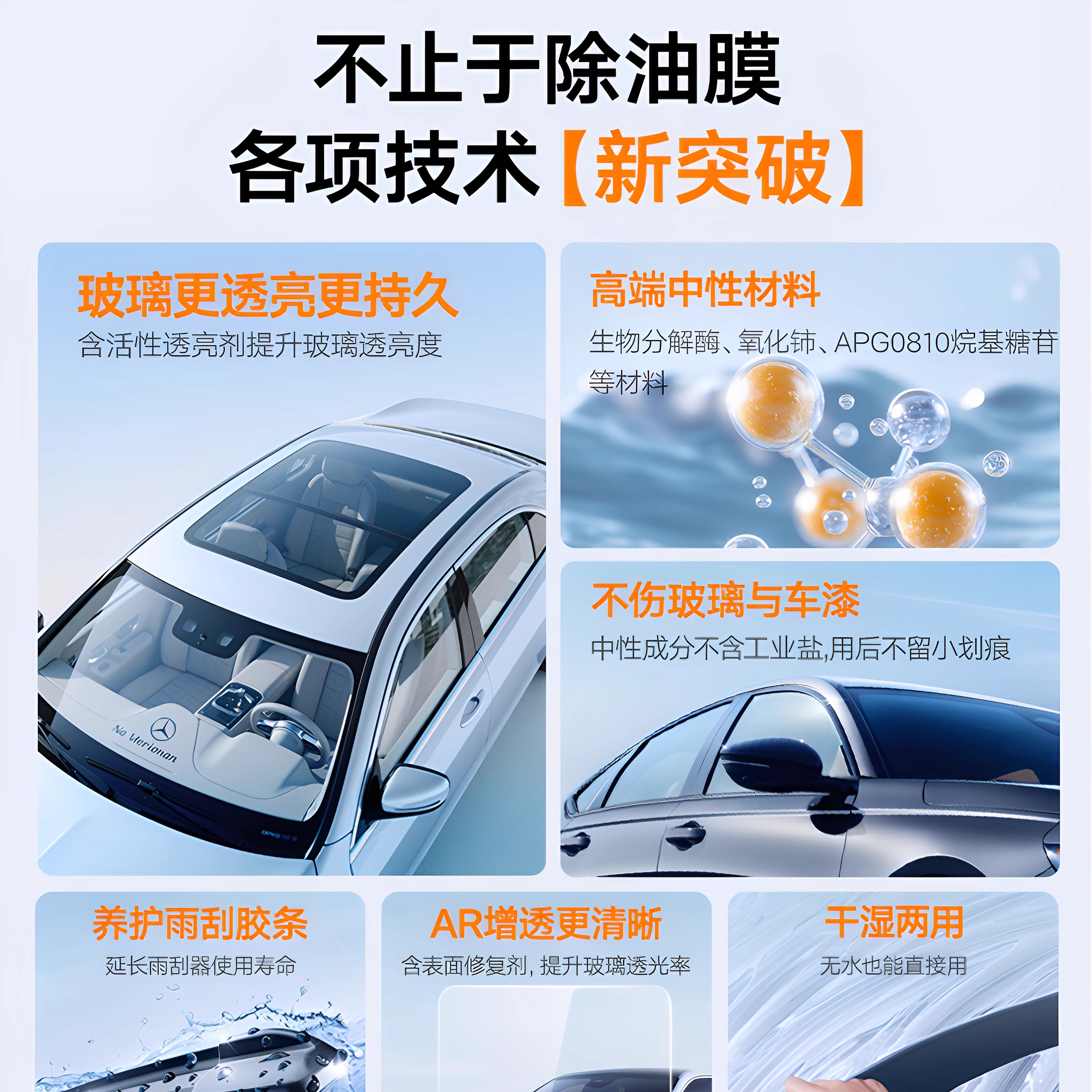 图拉斯汽车去油膜清洁剂前挡风玻璃去除剂泡沫清洗重度不挂水专用