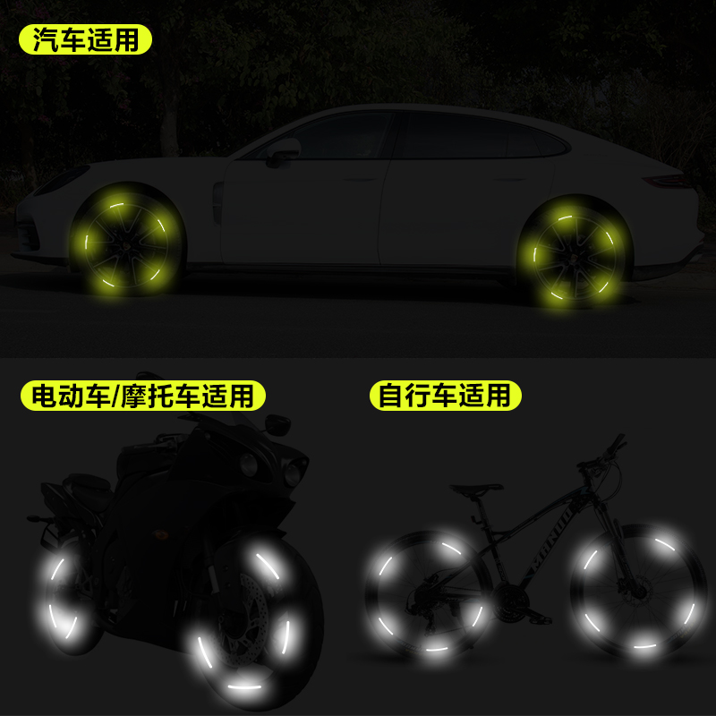 汽车轮毂反光贴高强反光个性 饰警示贴纸 创意电动摩托车轮胎网红装