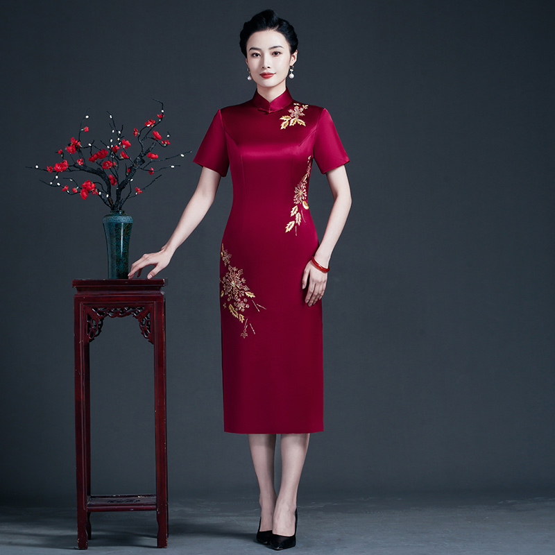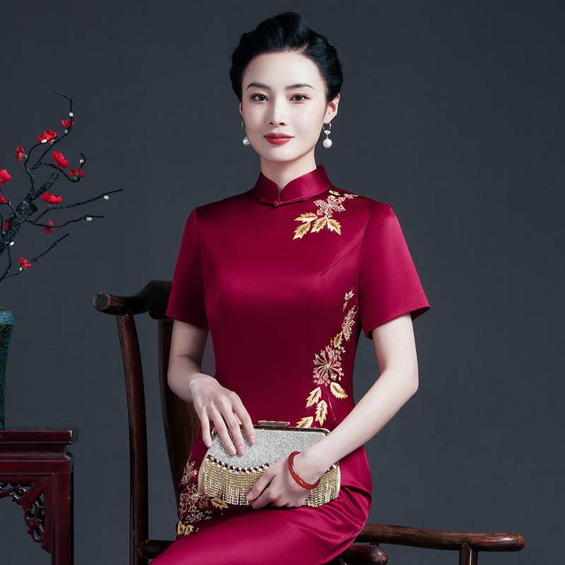 新中式 高级感订婚礼服女酒红色气质旗袍回门服 敬酒服新娘晨袍新款
