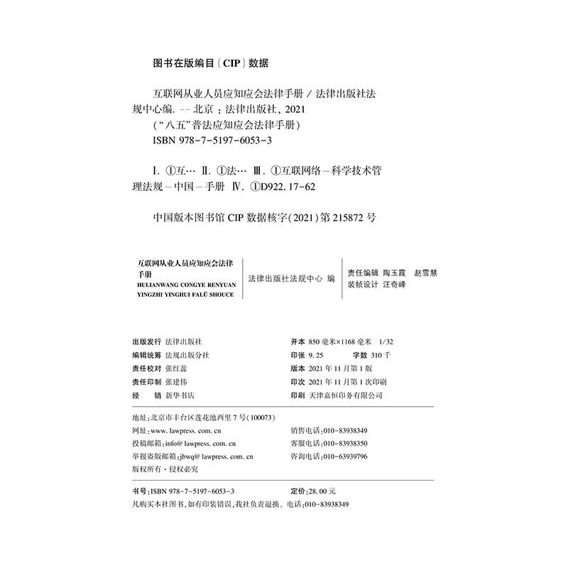 网络安全法 数据安全法 电子商务法 正版 法律出版 互联网从业人员应知应会法律手册 个人信息保护法 社9787519760533 2021新书