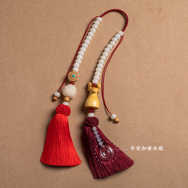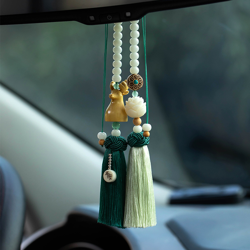 一鹿平安汽车挂件车吊饰手工香水白玉菩提挂饰后视镜 亏米福利