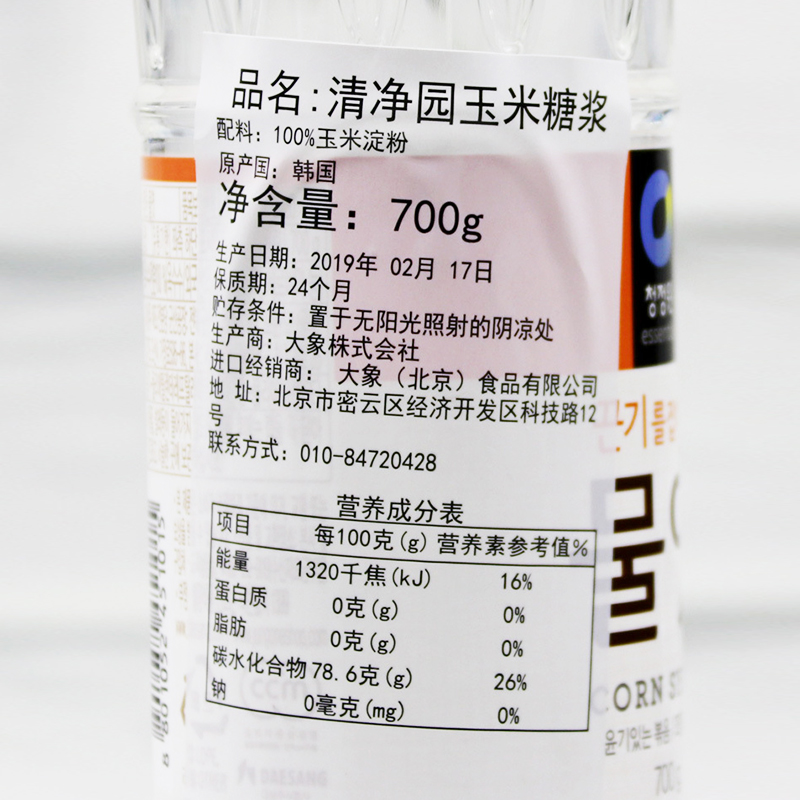 韩国清净园玉米转化糖浆700g糖稀烘焙甜品原料进口水饴麦芽糖糖浆
