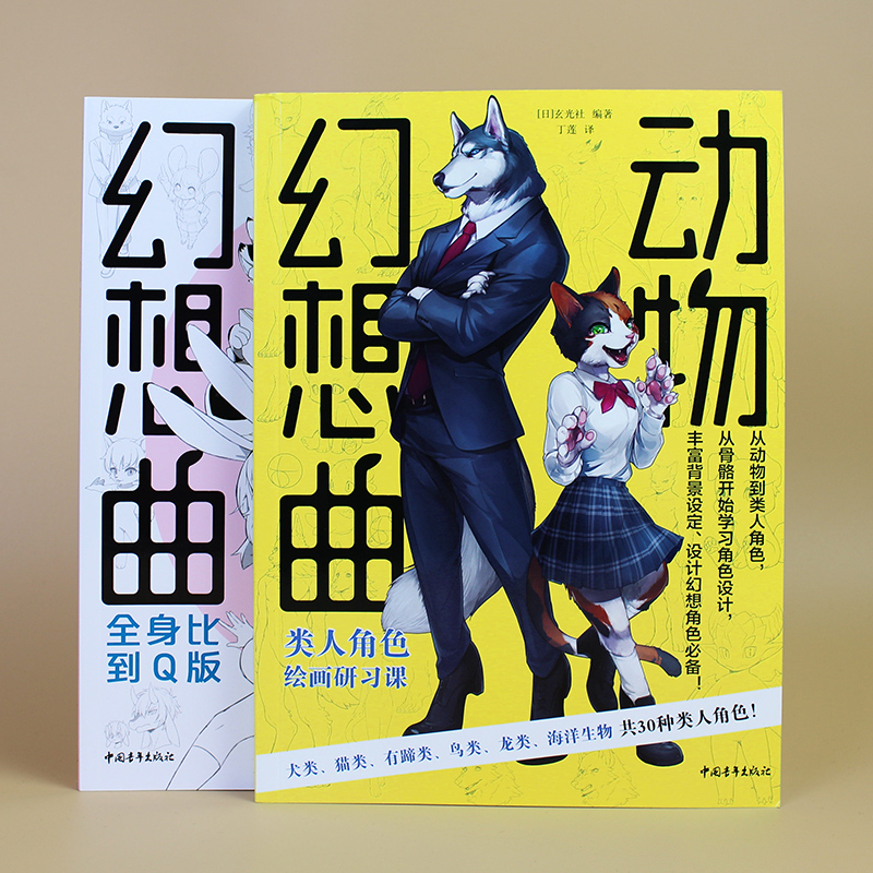 全身比到Q版 套装 2类人角色绘画研习课 动物幻想曲1 绘画技法动漫教程新手画画入门自学零基础漫画技法速写素描书籍 2册