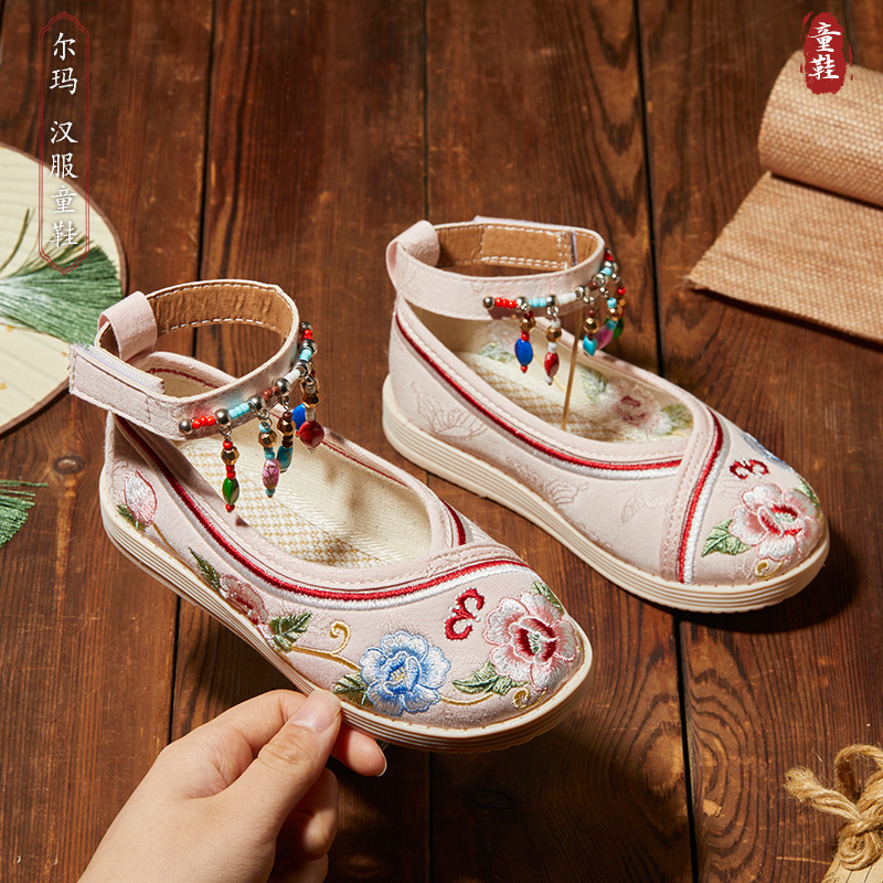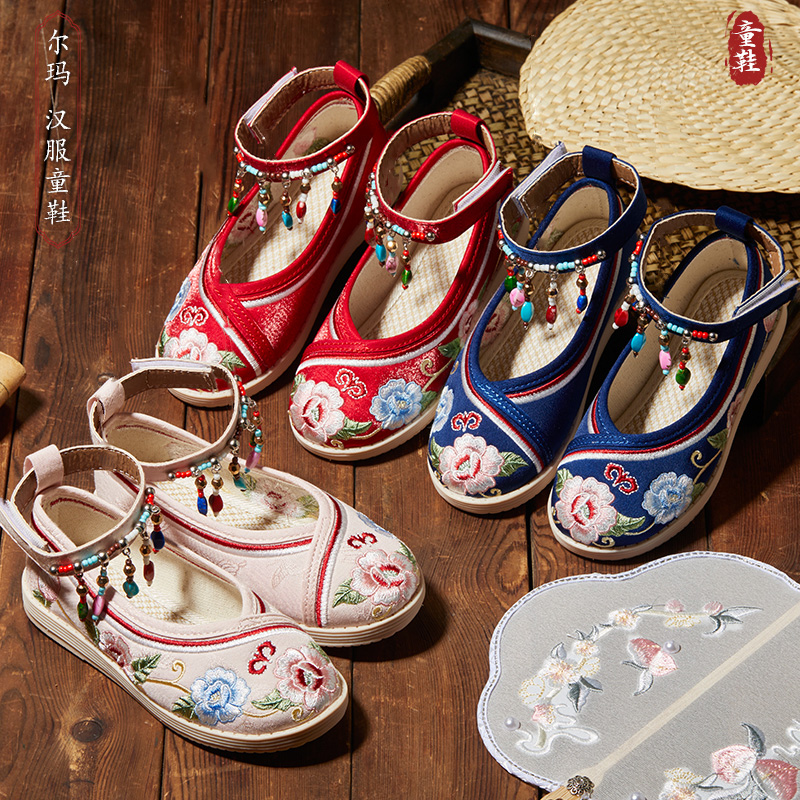 民族风表演儿童绣花鞋 女童汉服鞋 老北京手工布鞋 古风古装 春秋 新款