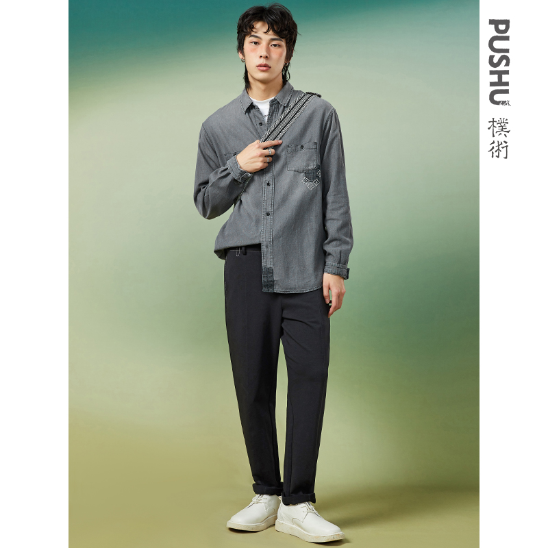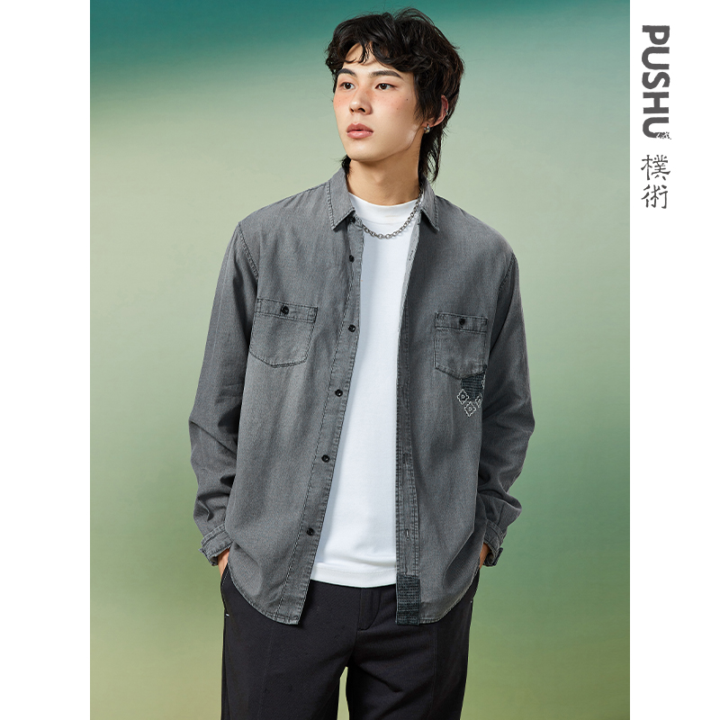 牛仔衬衣男18045803 男洗水单口袋宽松长袖 设计师款 佐丹奴牛仔衬衫