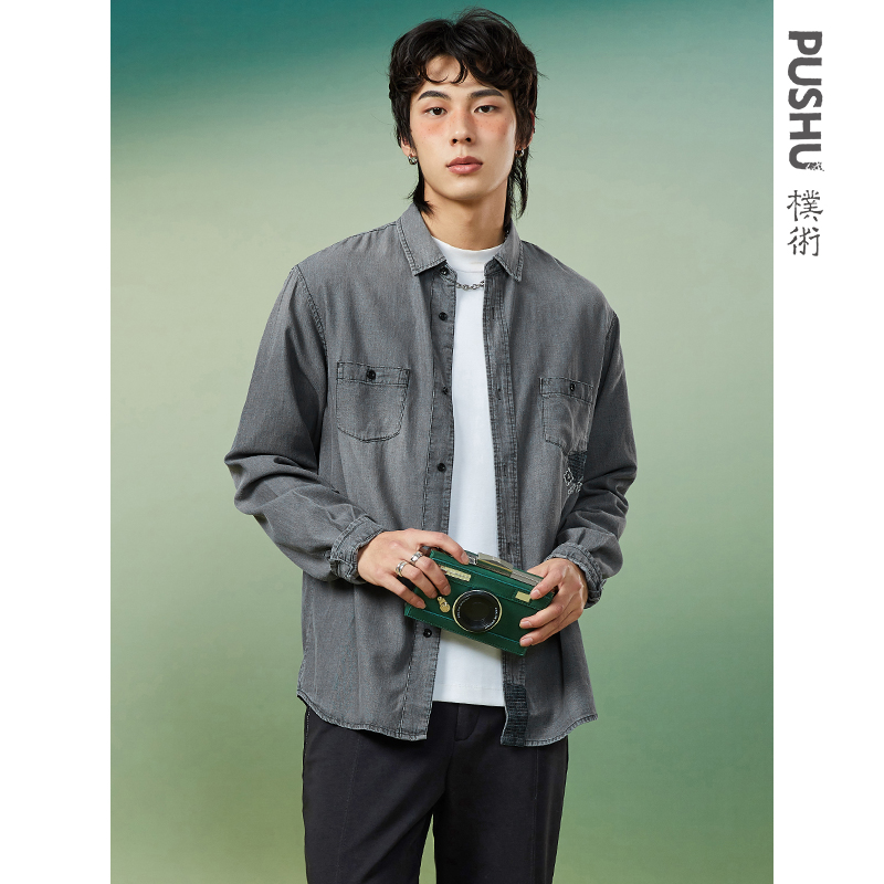 新品 秋季 真维斯复古牛仔衬衫 男女休闲衬衣外套KZ 王一博同款