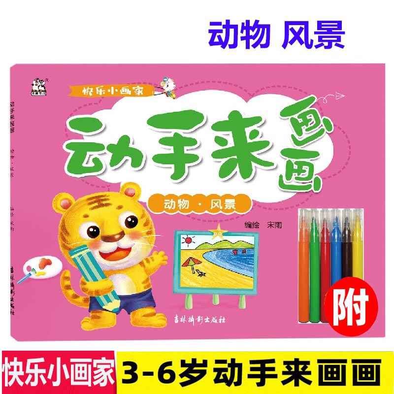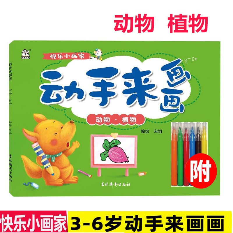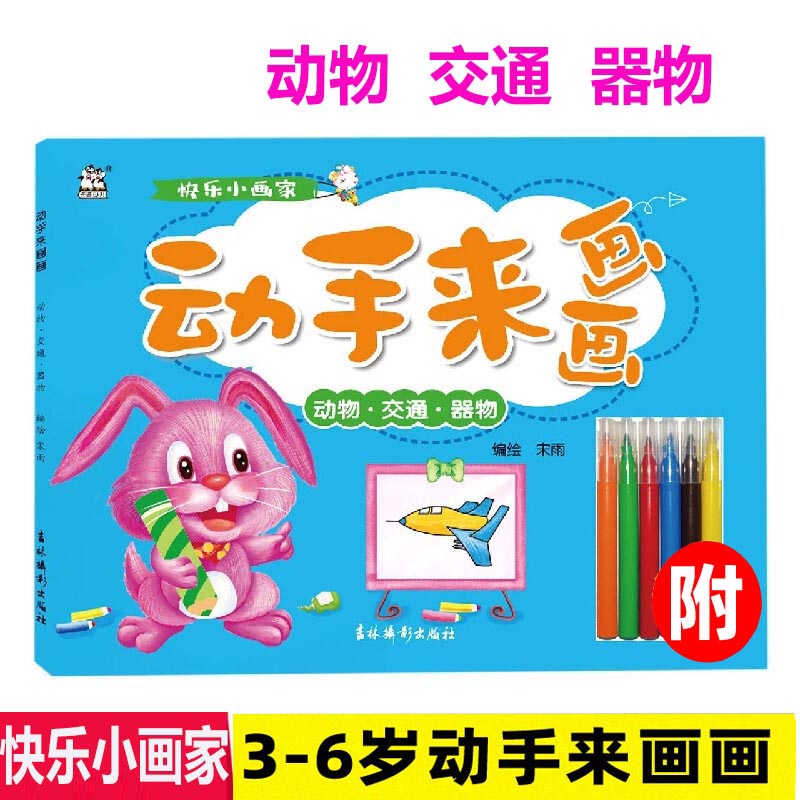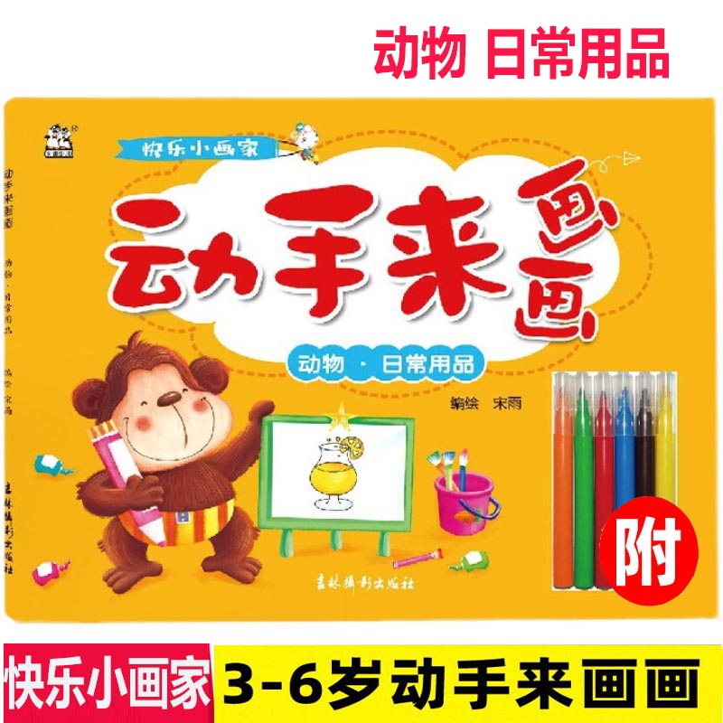 共4册快乐小画家动手来画画 6岁学前儿童少儿绘画亲子绘画涂色画简笔画幼儿学画画无蒙纸卡迪 动物风景日常用品交通器物植物适用3
