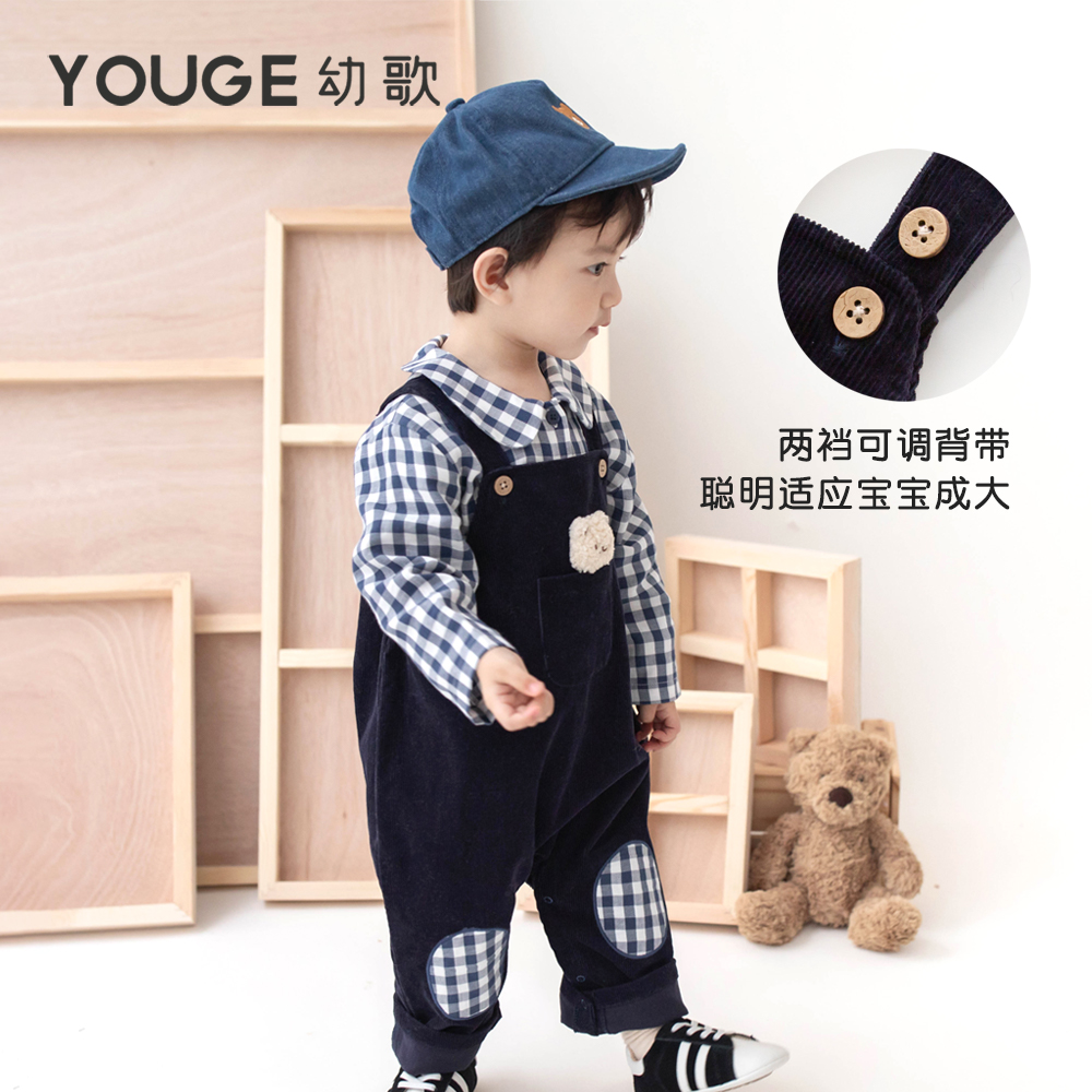 宝宝可爱玩偶长裤 春秋新款 婴幼儿挺括百搭灯芯绒背带裤 YOUGE幼歌