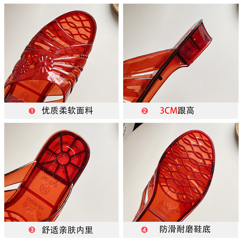 2025年新款 妈妈拖鞋 坡跟一字拖防滑老人凉拖鞋 外穿水晶鞋 女夏季