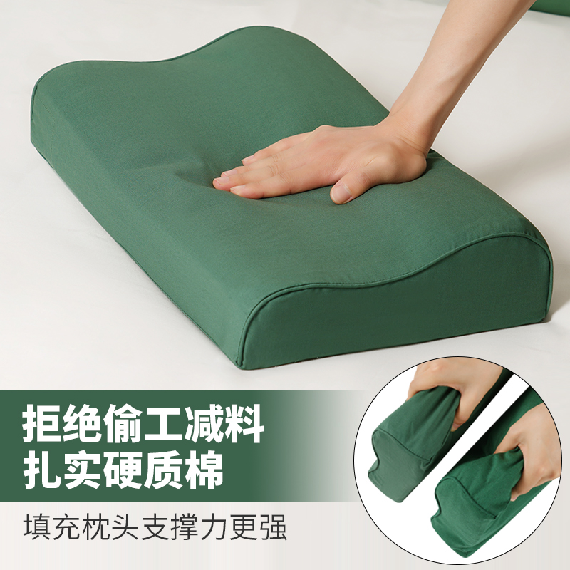 正品 内务硬枕头学生军训专用单人护颈椎助睡眠记忆棉枕 军绿色制式