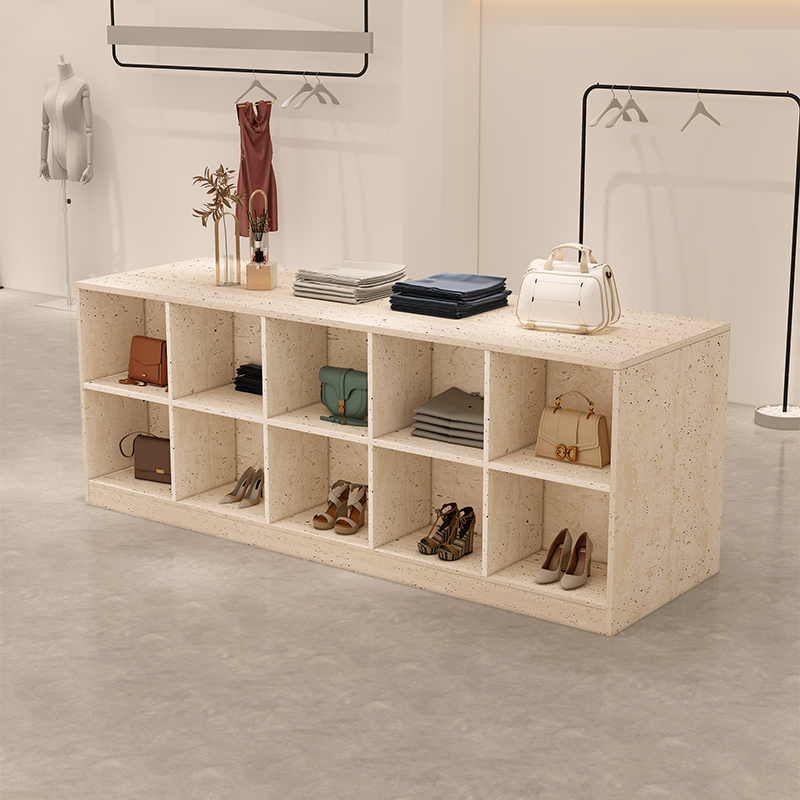 服装 店铺中间摆放陈列长条桌单面格子吧台展示 店流水台中岛桌女装