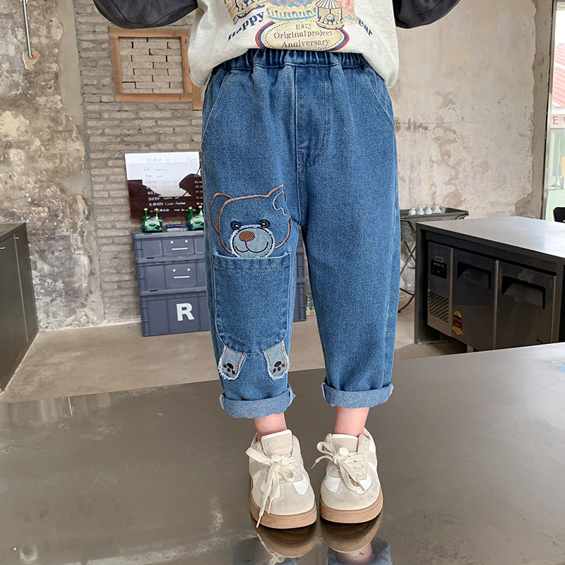 直筒宽松休闲阔腿长裤 子男2025年春秋季 子 小熊织带裤 查尔斯桃心