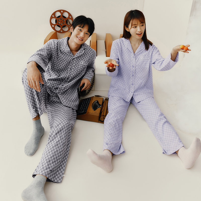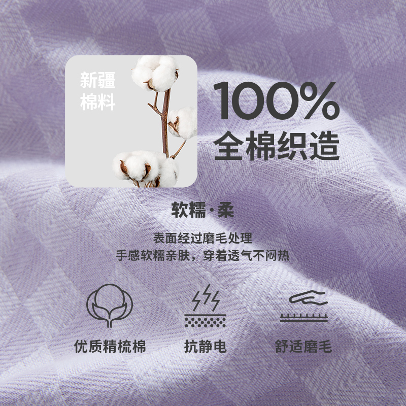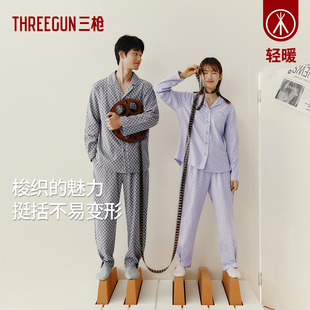 三枪秋冬防静电情侣纯棉睡衣男休闲棋盘格子长袖 超超柔软家居服