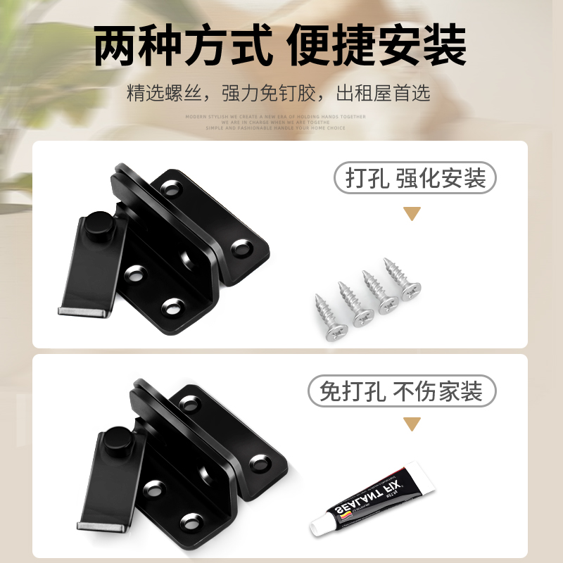 不锈钢插销免打孔粘贴式 推拉门厕所门扣门锁门栓卡扣固定房门锁扣