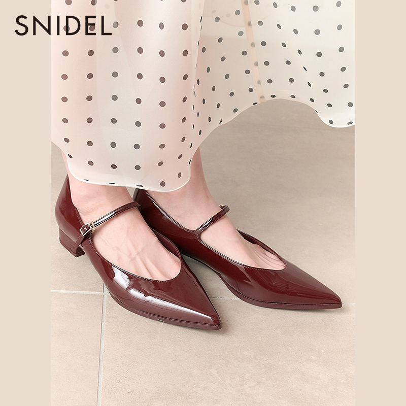 SNIDEL秋冬纯色尖头浅口一字带低跟休闲单鞋 SWGS234610
